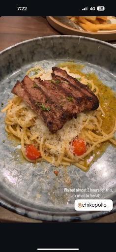 the food came in 40min-50min after ordering. 2x woodfire chicken rice bowl & 1x XL sotong rice bowl : rice was undercooked, could see the raw rice grain and it was crispy told the guy the rice was undercooked and he went to change it for us, rice then was fluffy and salty chicken and sotong was big in size and sotong was chewy(gum-like) 2x cheeseburger : fries was saltier than the seawater burger was salty too 1x hanger steak and fries : fries was saltier than the pacific ocean (it tasted like they harvest potato from the ocean) steak was cut wrongly, texture wasn't great and it was chewy despite being medium 1x carbonara with steak & 1x truffle pasta with steak : both steak was drier than sahara desert and tough 1x aglio olio with chicken : chicken was nice and thick not too sure why the aglio olio look creamy and had tomato (i aint no chef but to my understanding aglio olio doesn't have tomato, i may be wrong)