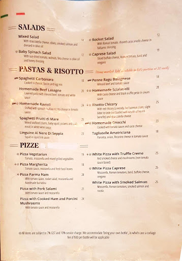 ย ย ย Read moregood intentions, poor performance. I was excited to try this restaurant. I arrived and the place was not too busy. But the owner stood behind the bar...never came by to say hello, never inquired about the guest experience or the food. This is not unusual in Singapore but does not explain the reviews describing him as friendly. An owner that cares about his business should strive to get feedback from his customers. The service was ok and average. One friendly server and another blank faced and indifferent. Hey, you should ask the customer if the food is OK (again this indifference is commonplace in Singapore). The food was not cooked well. I think the intentions are good but the cook is not very good. Does not know how to balance flavor. Pasta was soooo salty it could not be eaten. Parmigiana OK but again very salty and greasy. "Carpaccio" small amount of meat bland and at the same time a too strong overpowering truffle oil. Not very good. The young man working there was kind enough to remove the pasta charge (which was inedible). But I recommend you inquire about this after delivering a dish. No apologies from the owner who stood there indifferent. Much potential but poor execution...