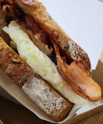 The breakfast menu at Firestone Bakery is only available on weekends, & they are priced more affordable than the other menu of sandwiches. After purposefully making the journey here, I was quite sad that the only 2 breakfast sandwiches available that day had bacon as a meat inside. My least favourite meat.. Ugh.