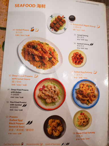 Read moreTried the Five Star signature set and honestly, the kampong chicken was a refreshing surprise. I did not expect the kampong chicken to be that tender and refreshing (but I believe it also helps when I chose to have the chicken thigh meat or 鸡尾部分 for my set). Ordered the Salted egg pork rib and it was tasty! Salted egg sotong tasted more like regular calamari with a tiny hint of salted egg sauce. It tasted better when we dipped the sotong with more of the Salted egg pork rib's sauce. If you wish to come here and try the food, I would recommend you to order their signature set and go for the chicken thigh parts. Skip the prawns (over-fried and it's a little dry for me) and their handmade tofu (tasted a hint of sour-ish to me). 东坡肉 or braised pork belly was ok, loved the tender pork skin but some part of the pork was tough and hard to chew). Salted egg pork rib is pretty good and you can try if...