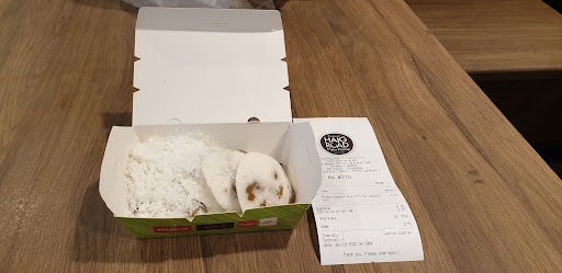 Read moreToday was too lazy to travel all the way to the original outlet at Haig road, so I decided to try the branch at East Village Mall. Ordered 3 original with gula melaka and 2 with brown coconut. Male staff informed that I have to wait awhile as they don't have any ready ones with brown coconut. During collection, I noticed that the packaging was in a box instead of the usual paper wrappings used at the Haig road outlet. Upon reaching home, while we were eating, my eldest daughter also notice the new packaging in the box and said that just one week ago, she had bought some from the Haig road outlet and they were still using the original paper wrappings. The other difference is East Village is $3.20 for 4 pieces (80 cents each) whereas at Haig road is $2.50 for 5 pieces (50 cents each). And quality wise, over here at East Village, the fillings of gula melaka and brown coconut is very little. What's the purpose of having a beautiful box with higher price, less quantity (4 piece instead of 5), lesser fillings of gula melaka and lost in taste and quality. I would rather travel further to the original store with better quality and...