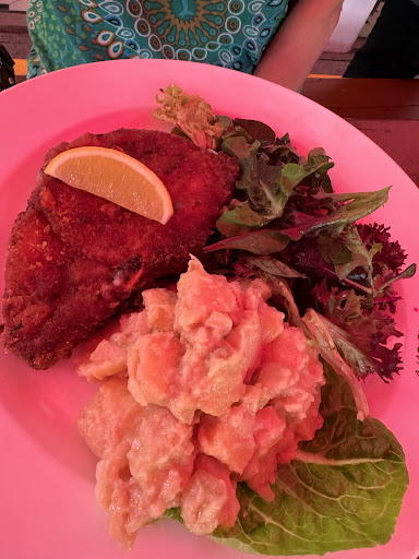 Pork Cordon Bleu was cooked well too, with generous amounts of salad and also some really good potato salad with a nice balance of mustard in it. The kids got schnitzel with fries again, and they were stuffed by the portion. Kids meal hot dog nothing to shout about but always a kid’s favourite.