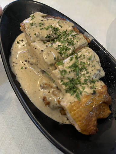 Finally we ate their chicken šš which was very crunchy and juicy. But it was drowned in this carbonara(?) sauce which was too creamy for us already. We also got their toasted sweet potatoes š which had crispy skin and was toasty!