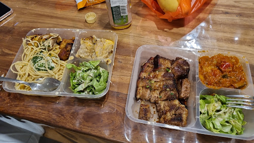I first heard of this place from a friend, as well as some reviews I read online that raved about it so I had high expectations going into this. We ordered the spiced chicken with aglio olio, and beef brisket with ratatouille, to go. As they were slicing my order on the board, my first thought was wow.. that's a lot of food. That made me super excited to get stuck in. First, the chicken ($10.50). It was well cooked, well marinated and tender. It came with an onion sauce which went well its smokey flavour. The aglio olio was extremely generous- the picture was taken after we'd tucked in, and it was still a tonne of pasta. All proteins came with a choice of side and salad, so this was a very complete meal which would pretty much guarantee that anyone would have their fill. The beef brisket was... incredible. I love smoked meats, and I've been to places such as Smokey's and Deckers. At these prices and portion size, I would argue that this has them all beat. The meat was ultra tender, still juicy despite being in a container for the duration of the journey home, and the fat was just unctuous, decadent, melting goodness. The intense smokines paired amazingly well with the crisp bark, leaving a lingering mouthful of spices and smoke long after you're done with that bite. It was perfectly seasoned, and came with a barbeque sauce where it's sweetness and slight tang really balanced the dish out well. The ratatouille it came with was seasoned well, had deep complex flavours with the right consistency. Its acidity provided the perfect contrast to the fatty brisket. Amazingly for the the amount they give, it only costs $12.90 (the picture of the brisket was after I snuck a slice or two). I've paid 3 times the amount for less than half the portion size for beef brisket elsewhere.