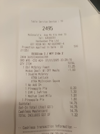 Read moreI put in an order for McDelivery through the McDonalds app and my order was supposed to be fulfilled by this branch at Ang Mo Kio Avenue 10. An hour later, I was still waiting. When I called the central helpline, they said someone from the branch would call me back and they did, shortly, apologising for the lateness of my order, and saying that the third-party delivery driver did not show up. The manager said she would send her own driver with my food asap and after 15mins, it arrived... all the food was cold, soggy and wet (condensation from the heat). I was furious, but was unable to contact the branch - no one answered the phone - nor the central helpline, who had stopped taking calls because they were receiving too many calls. This was two months ago. Today, I ordered again, same branch, same issue. After an hour, no one bothered to call me and the central helpline says the restaurant cannot find a driver. And promised that the manager would call me back. It's been 90mins since I ordered and 20mins since I spoke to the central helpline and no calls from the the manager, no food in sight. This is so...