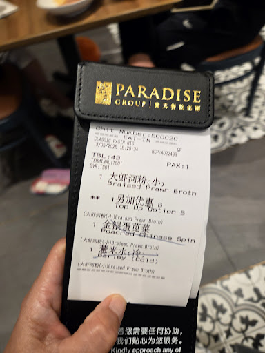 Read moreJust like to feedback on the lousy dinning experience I had just now at Paradise Classic at Pasir Ris Mall B1-35. I ordered a simple meal of horfun, vege and barley at 4.29pm. I think there are about 10 dinners or so. Until 5.15pm I still cannot see any horfun being served. Those who came later than me who ordered horfun all get their food. When I asked the male captain at 5.05pm, he said he will checked but never get back to me. I finally cannot take it and went to settle the bill at 5.15pm, the male captain said you haven't had your food. I told him my unhappiness and he keep pressing the cash register with no eye contact ar all. In the end he said: "ok lor. 这餐我请你吃‘’ This is the worst response. I have to walked out of your restaurant feeling...