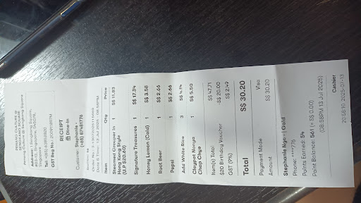 Read moreHad dinner with my family @ compass one Penang culture on 13 July . Scanned to order and there was 1 x $20 voucher and 1 x $10 birthday voucher for me to redeem as July is my birthday month . After we finished , I proceed to the cashier to pay , to my surprise , I was questioned by the female cashier - how come I have a $20 birthday voucher to offset which she is not aware that there is one before - I show her the app to proof there is such voucher and I redeemed it thru the member portal . When another male staff approached the counter , she asked him - do you know if there is a$20 birthday voucher ? he too replied - never come across before . She even login to her own member portal to check why she don't have one since July is also her birthday month and they both concluded it could be a system error and she asked the male staff to check with office on Monday . She go ahead to let me pay for the bill anyway cos she say is the office issue not her issue . before I leave the restaurant she asked to leave my mobile no. and say don't worry , we will not ask you come back to pay the $20 - maybe she mean it as a joke but I don't find it funny instead I am very disappointed and disgusted by her service to a customer . Btw , I am a gold tier membership , after checking - gold tier member will have a $20 voucher for her birthday month and a $10 voucher from Silver , correct me if I am wrong cos I think I deserve an explanation and if it is really an system error , I don't mind to pay for the discrepancy . Hope to hear from someone...