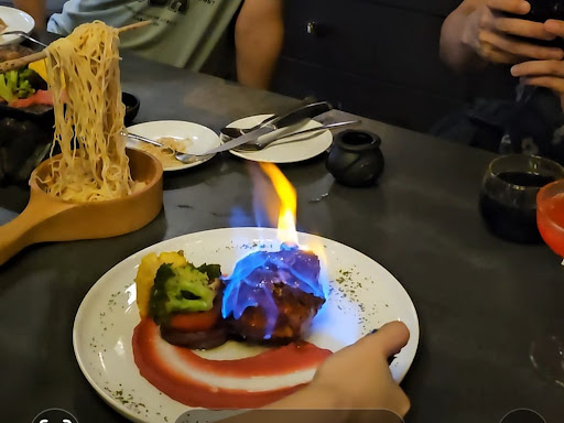 There were 9 of us and we managed to order a variety of mains and drinks. I ordered the Flying Charm, which was shrimps with angel hair spaghetti that looked like it was floating in the air. These “in the air” noodles had gained popularity in recent years, but I’ve not gotten round to give it a try until now. The “Flying Charm” came with some dry ice at the side, giving it a dreamy and mystic feel. The Half-BBQ chicken was torched at our table, adding on an element of ‘interactivity’. I didn’t get to try this dish, but my friends that did, had such high praises for it.
