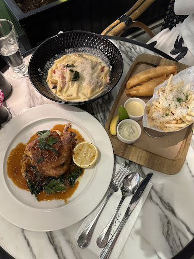 The truffle oil in their truffle fries has noticeably decreased, and the food consistently arrives lukewarm 🫠Whether it's the breakfast set, roast chicken, or pasta, it feels like they have been sitting in the kitchen for some time before being served.