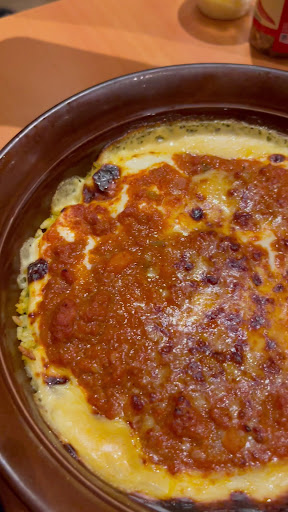 I initially got a Cheese Chicken Baked Rice, which I then tried to get the attention of the staff which didnt attend to me, I then went to the kitchen to talk to the staff they then went to my table, picked up the wrong food, went to another table to place that food there, and took it from that other table to me. They said they didnāt touch it, but Iām not taking his word for it, plus there are 3 people at that table talking and laughing, so not that very most sanitary in my eyes. 10 minutes later I got my food again, new? Or not I donāt know, however it was not creamy, and I as very bland, oily water base, spaghetti, and meat that tasted like pork and not chicken. Really unappealing