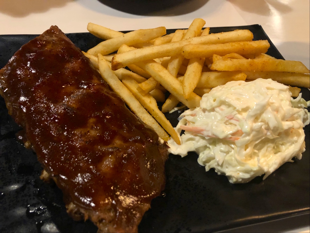 Mains, baby back ribs: we actually ordered the small portion twice cos the meat was tender, and also cos among the other mains, this was the best. The coleslaw was GOOD. Will recommend. They have it as a side too.