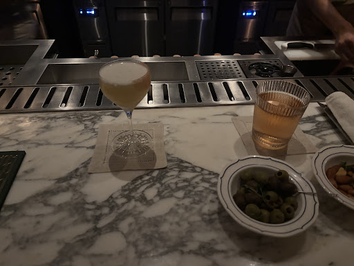 Read moreNewly opened at Capella Singapore. This bar is intimate and has a classic contemporary style about it. The pineapple represents a few things but what sticks out to me is the spirit of hospitality as well as warmth and friendliness. This bar exudes this from their staff, whether recommending a drink or just acknowledging you by name. There is normal seating as well as bar seating. The menu is extensive and has some great cocktails on it. We served a refreshing melon tea first. We also had some bar snack of olives and nuts to go with our drinks. I had the Compass Rose. It had gin, lemon, heritage spices, green grapes, and rose water. I prefer my cocktails sweet and this one hit the spot. A great blend and with a large ice cube (stamped with bar logo which is a lovely touch) and a single rose petal. Elegant and refined is how I would describe this cocktail.