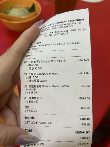 We ordered red garouper fishhead steamboat. Very nice rich soup base, fresh fish, thick fleshy cut 🌟🌟🌟. Their side dishes, prawn paste chicken & sambal potato leaves were also really good.