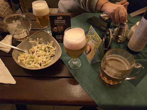 Read moreKeď tu čítam tie pozitívne recenzie na milý personál a príjemnú atmosféru, mám pocit že som v sobotu na obed bola v inom podniku s rovnakým názvom. Pevne verím, že obsluha mala len veľmi zlý deň, lebo taký amaterizmus som už veľmi dlho nevidela. Food runnerka nám doniesla polievku, ktorú sme neobjednali, a po upozornení že to nie je pre nás, bez jediného slovíčka zmätena odbehla. Toto sa zopakovalo 3 krát (!!), pričom už sme sa s partiou začali smiať nad bizarnosťou tej situácie. Doslova nikto zo zamestnancov, na ktorých sme natrafili, na nás nepôsobil ako profesionál. S kamoskou sme si objednali vyprážaný pastiersky syr. Prišlo nám takéto čudo, ale boli sme hladní a rozhodli sme sa že to zjeme. Neviem no, spravte si názor sami, no podľa mna toto nie je hodné 8-9€. Sedeli sme na terase, no cestou na WC som videla v interiéri totálny bordel a chaos. Samotné WC je tiež úrovňou tretej cenovej - 1 kutica pre cely podnik. Pivko posúdiť neviem keďže som ho nemala, no od plzenskej reštaurácie očakávam teda úplne iný servis, atmosféru a čistotu. Som veľmi sklamaná, no keď budem nabuduce v BB, dám tomu...