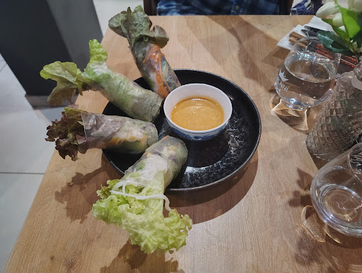 Read morewe went all vegetarian with a cuon roll, a bao bun and the bun noodles. the tastes where fresh, light and subtle as you'd expect with vietnamese. The food was five star. The service was poor with tables that came in after us being served before us we had to ask to order. I think our server had a long day. disappointingly they don't serve tap water, only bottled water. Don't mind paying just a...