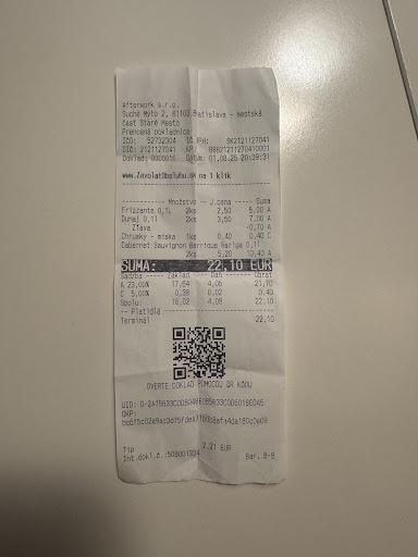 I went there with my classmates from uni, one of the best bars I've been to in Bratislava. It has a cozy, friendly vibe with great music. We sat on their terrace and ordered a couple of drinks. I tried some of their wines (I recommend trying them). The personnel was so sweet and helpful, they offered us some blankets during the night. We met the owner of the bar as well, he was so nice I could see that he truly cares about their customers. Overall, I recommend this place, and for sure...