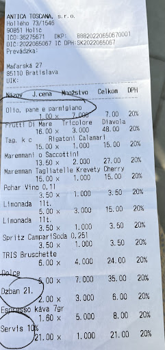 I feel really sorry to give only 2 stars to this restaurant. I have been to Antica Toscana several times and the food is good, but this time there were so many bad aspects that the 'good food' is not enough. If you go there in 6+ people, the restaurant is asking you to order the food at the time of the booking and to take a limited number of different dishes. Both of those rules are really annoying and ridiculous for me. But ok, the restaurant explained they do this to better organize the service and the kitchen. Of course we respected the rules and we ordered the food 2 days in advance from the online menu, as requested. I and another person ordered a kind of pasta (saccottini) with mushrooms. Despite the pre-order, they gave to us the saccottini with another kind of sauce. I complained in a kind way with the owner, saying that I was eating the food, but I ordered and preferred another sauce. The reply has been not very polite "I don't have mushrooms available during summer, so with mushrooms it was not possible". Ok, I understand you don't have mushrooms at all for the whole summer... But I ordered the dishes 2 days before, so they had the time to write me and ask if it was ok with another sauce or if I prefer to change with another dish or at least they could warn me once I arrived at the restaurant. Instead, no one asked me and no one said anything and when I complained, the answer was not even polite! What if I don't like this other sauce or if I have allergies to it? Completely not professional and at least I would have expected a different kind of reply. If I add to this "disorder", the fact that they charged us 10% of service fee (are we in US?) and the service has been very very slow, they charged for bread, oil, parmesan and tap water (which is ridiculous in my opinion)... Then you would understand why I'm here to write this feedback. I hope that the feedback will be taken as constructive and not in a bad way! Feedbacks are used to improve the service and not to get offended! Anyway, this time the sentence "the customer is always right" was not valid at all! More likely the correct sentence would be "this is how I do in my restaurant and if you don't like, go somewhere else"....