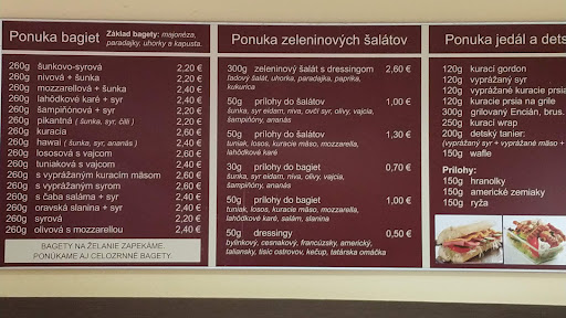 Read moreVýborná bageta s čerstvou zeleninou do konca ak nemôžete mliečne výrobky prípadne syr, je možné si dať miesto syru napr dvojitú šunku prípadne miesto majonézy kečup vystupovanie majiteľa a obsluhy príjemné priam až kamarátske.