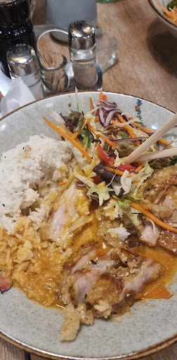 The sushi was below average—far from fresh, with poor-quality fish. On the brighter side, the fried rice with tofu was delicious, and the vang golden curry with crispy chicken had great flavor. However, the chicken felt slightly undercooked, and the portion of curry could have been more generous. The addition of boiled sweet potato on the side was a nice touch. The udon noodles with chicken were tasty, but the pho was just average.