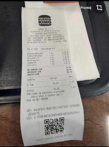 Read moreBurger King on Laurinská Street was a fantastic experience! The location is central and convenient, perfect for a quick bite while exploring Bratislava. The burgers were delicious and freshly made, exactly what I was craving. The staff was friendly and efficient, ensuring a pleasant dining experience. The restaurant itself was clean and well-maintained, with a cozy atmosphere. Overall, Burger King Laurinská exceeded my expectations with great food, service, and ambiance. Highly recommended for burger lovers...