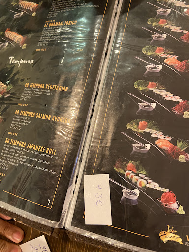 As it turned out in the end, he still counted them in the bill (the expensive ones). When I went to break down the bill he deducted only for the sushi and for the rest of the price he started speaking in a language I didn't understand (it wasn't Slovak) and started showing his displeasure. The menu is from 2018 and what is written on the paper +3€ is a surcharge on everything, which basically makes the place expensive.