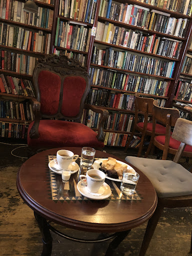The place has both good and not-so-good sides. The coffee was tasty and nicely served in an old cup, which gave it a bit of charm. I also liked that they had a lactose-free option. The terrace is small but pleasant, with a tree and some flowers in the courtyard, which makes sitting outside more enjoyable. Inside, there are lots of books and some interesting paintings that give the space character On the other hand, the atmosphere wasn’t very comfortable. People smoke both inside and outside, so the smell of cigarettes is everywhere, and the furniture feels quite old and worn. While the terrace feels lighter, inside it can be a bit heavy and not so easy to relax Overall, it’s an interesting spot with good coffee and some nice details, but the smoke and condition of the interior made the experience...