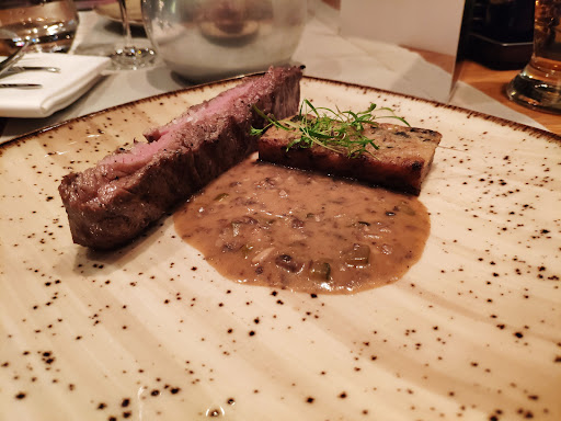 I had the halloumi bruschetta and my husband had the beef sashimi - both incredible. My husband’s tenderloin steak was one of the best he’s had, he said - high praise indeed from him! I had the risotto, which was amazing. The creme brûlée was incredible - I talked about coming back just for dessert... The drinks were wonderful and the atmosphere was just lovely.