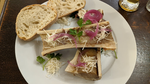 Read moreOk. So I love marrow. It's generally hard to find while traveling, but there was a nice photo of some on a review so we found ourselves here. We are so glad we did. The best marrow I've ever had. Big bones, lots of marrow in there. Damn. Served with fresh horseradish and toast. The only thing I would have changed is the toast. I'm not big on had, crusty bread. I know a lot of people like it, but I prefer something more like Irish soda bread. Anyway, I digress. The food was awesome. I also got something I can't pronounce that was like cheesy spätzle. Very nice. Prices were also very low (for Europe, I don't know how it compares locally since this was our first meal in Bratislava). The place was absolutely dead on a Wednesday night, but you'd never know it as far as the staff goes. They were awesome. We've got another night here, we might just go again. The menu has so many things on it that we wanted to try, but a man can only eat so much in...