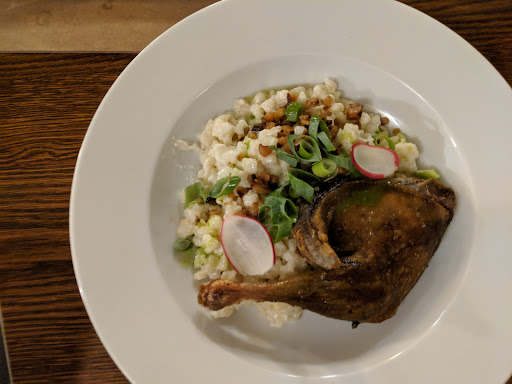 So glad I paid attention to all the amazing past reviews here. Came here on Friday night for dinner and opted to sit inside to get a view of the bar and artistic ceiling. The waiter was very friendly and recommended me to try the duck leg bryndzové halusky , so I went with the suggestion and a glass of Slovakia Staropramen 0.5cl beer. The owner, Zlatko was also very kind and friendly, and explained his family restaurant business. He sources his ingredients like meat, cheese from very careful and reputable vendors. For example, duck is sourced from a farmer with over 20 years in the business who also exports to France. The restaurant only opened two years ago but has made such rapid strides: featuring in the Gurmán magazine, thus earning a prized certificate framed on the wall (like a Michelin star for the country). He was kind enough to offer me a digestif on the house: a lovely Slovakian Brandy, Karpatské. Service was also very attentive and the prices are very reasonable considering the portion sizes and quality. Ambiance was cozy and warm along with some lively traditional Slovak music played by Kollárovci (I had to use Shazam!). Old family pictures on the wall and ceiling reminding one of fresco paintings. They made me feel very welcome like a member of the family! I highly recommend you visit here when you travel to Bratislava. I wish we had a nice Slovakian restaurant like this in Canada but all the more reason to visit Bratislava and Dolnozemská krčma again. I wish to thank the team again and wish them good luck in...