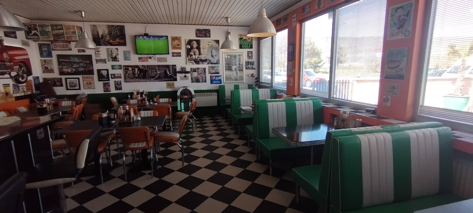 Read morePeople will get excited because they've never been to an American diner before..but let me tell you...this is not one of them. It's literally a box instead of a building. They put some windows in it and a kitchen inside. If you eat in, you are sitting in the kitchen and will smell like a burger. If you sit outside, you are just on a regular patio so you miss out on the faux-americana. Although, the Americana is all wrong. The colors are orange and green for some reason, and the setting doesn't resemble a diner. Food is...
