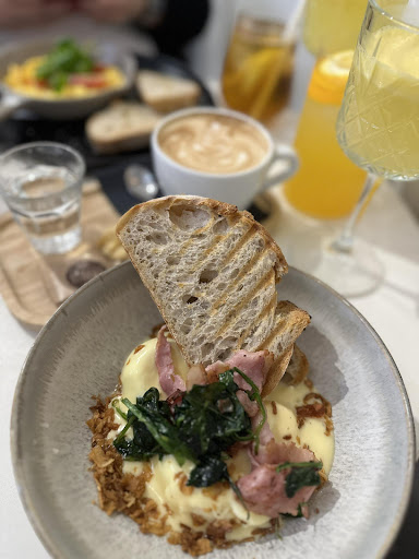 Read moreI cannot say how much I love this location. I've passed by it many times, but necer went inside. It stayed stuck to my mind and since today I had some waiting time, decided to get myself a nice brrakfast. The atmosphete inside in warm and cozy, the decor is simple yet elegant and the lighting is a combination of natural light and warm electric light which makes it for welcoming. The Benedict Eggs with Salmon were a delight and the white latte is anything you can want from a coffee. The establishment got quite busy and soon there was little place to sit at the tables as people kept coming. Even so, the service was prompt and the girls were proactive, making sure no one was waiting for too long. On my way out, the window case caught my eyes with a few desserts and decided to take some to go. I got chocolate cake and carrot cake, both delicious, but I was amazed by the carrot cake which is my favorite. Best I ever had in all my trials to find the perfect carrot cake. Compliments to whiever made it. Prices are average, nothing exaggerated, ai paid the right amount for what I had I would say. Loved the place ☺️ You...
