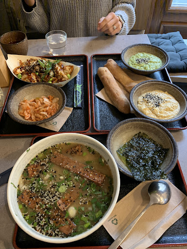 We’ve stumbled here today thanks to google and good reviews, hoping to get some tasty healthy dinner. When ee entered the staff was welcoming, the interior was very pretty. The selection was small - only 3-5 meals, not cheap. But the food was good-looking, so we picked Ramen and Falafel - 6,9€ each. There was some problem with paying so we just ordered and waited for the meal. The waiter brought us Falafel and one meal which we returned, because it was not what we ordered - it belonged to the table next to us. After my boyfriend ate the Falafel, I still did not have my Ramen. So we asked about whats wrong and it appeared that they have forgotten, which sometimes happens, we tolerated it despite the fact there were like 4 customers in there. One minute later, the Ramen was finished. And as much as Falafel tasted great, the Ramen was a disappointement. It was cold, salty, and looked totally different compared to the photo. In conclusion, the quality and portion sizes are not adequate to the price. And I do not advise you to order the tea if you prefer it without sugar. As we were paying and leaving, some guy came in, very welcomed by the young staff who said: “Hi K, I am just about to have a break, lets get high and munch on some food!” So, we understood the situation. Think twice before choosing to eat in...