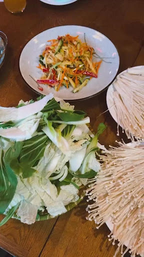 In the picture is Gao's special hot pot that i highly recommend for you guys . Broth made from beef bones, served with vegetables, mushrooms, seafood and beef , or many other toppings that you can freely choose .