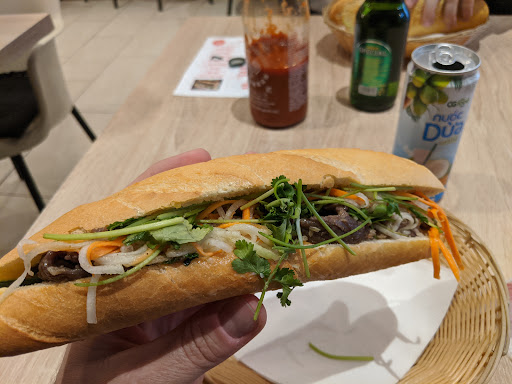 Great atmosphere right off the main shopping street. Staff was friendly, menus in English, Slovak, and Vietnamese. Cash only for now. Super reasonable prices. I got the marinated beef (#8) and my buddy got the marinated pork and we were both super happy. Meat was tender and flavorful, the bread is made fresh on site every day and is super crispy and delicious, and the coriander really made the whole thing pop. I'll definitely be back on...