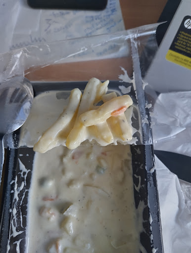 Sklamanie,...... výber jedla bol hrozný, skôr by som porazil Napoleona, ako si vybral jedno z tých jedál,..... jedlo to veru nevyzeralo,.... po dlhšom špekulovaní som si nakoniec vybral denné menu číslo 1 ako menšie zlo...... polievka bola otrasná, milujem cesnakovú polievku, ale toto okolo cesnaku ani len nešlo, len to nieslo jeho názov, čierny to deň pre cesnak ako taký....... takže po 1 súste ide paródia na polievku bokom a prichádza na rad šalát s 2 rezňami...... Šalát opäť otras,aj šalát z pultového predaja v Kauflande je oproti tomuto delikatesa..... nezachránili to žiaľ ani 2 rezne(ani keksík za 19 centov),ktoré boli chuťovo také, ako majú rezne byť, ale oba by sa mi bez najmenších problémov zmestili na dĺžku do dlane..... niekde predomnou tu ospevovali veľké porcie, k tomu len toľko, že ak meriate 120 centimetrov, tak to vážne bude mega porcia, dospelý chlap ani nespozoruje že niečo zjedol...... takže na záver by som dodal, že je to v pomere s kvalitou solídne predražené vzhľadom k tomu, že inde si priplatíte 50 centov a dostanete aj jedlo, ktoré sa bude dať aj...
