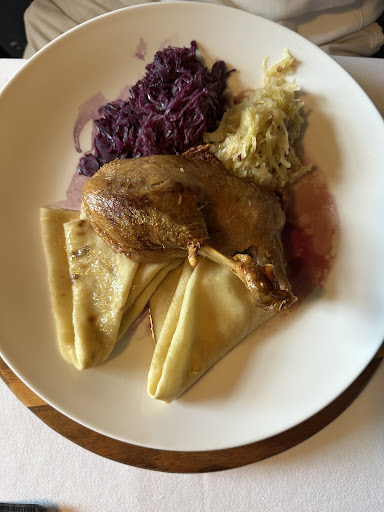 Read moreV tejto reštaurácii sme mali firemnú večeru z práce kde sme sa rozhodli že si dáme husacie hody. Vyžiadali sme si vinnú kartu a rozhodli sa pre víno Primitívo, ktoré môžem vrelo odporúčiť. Je to skvelé a cenovo prijateľné víno, ktoré má charakteristickú a nezamenitelnú chut, Predjedlá: Keďže nás bolo viac tak sme si vybrali z každého druhu predjedal. Každé z predjedál bolo skvelé. Najviac nám chutili predjedlá z húcacej pečienky a creme brulee s vykrmenej pečienky,čučoriedkami a ooečený chlieb.Tu by som poznamenala, že v jedálnom lístku píšu že dostanete k tomu opečený chlieb, no bol to iba jeden krájec toastového chleba, ktorý nebol postačujúci k množstvu pečienkového krému. Tak sme si doobjedali domáci chlieb. Tatarák si veľmi pochvaľovali tiež. Hlavný chod. Už bola trošku iná pesnička. Kačacie štvrťky boli dosť suché, kolegynke vadilo že v dusenej kapuste cítila veľké množstvo škorice. Ostatným to neprekážalo skôr si to pochvaľovali, takže toto je vyslovene o chuti. Tí čo si objednali hus,tvrdili že bola síce mastnejšia ale mali veľmi málo mäsa. Sťažovali sa na pocit akoby len ohlodávali kostí. Ja som si dala viedenskú roštenku s fritovanou cibuľkou a zemiakovým pyré. Tomuto jedlo by sa nedalo takmer nič vytknúť. Zemiaková kaša bola skvelá, krémová jemnej konzistencie, fritovaná cibuľka chrumkala pod zubami, a nebola vôbec mastná bolo to skvelé. No nemilo ma prekvapila viedenská roštenka, na ktorú som nevedela či si mám vyžiadať mlynček z kuchyne alebo mi to má niekto predžuť. Mäso bolo tuhé, ťažko sa krájalo a ešte ťažšie jedlo. Keď nám čašníci priniesli hlavné jedlo odišli a k stolu sa nevrátili dosť dlhú dobu, s tým že sme ich vyhliadali. Niektorým z nás chýbala na stole nejaká maličkosť, masť na lokše, ktoru si chcela vypýtať kolegynka a poniektorí z nás potrebovali doliať pohár vina. Nemáme radi ak sú čašníci príliš často pri stole, ale zase je zvykom že vždy po servírovaní jedla sa prídu spýtať či je všetko v poriadku, či nám niečo nechýba potom nás nechajú v kľude vychutnať si jedlo. Možno vedeli že nám nepriniesli požadovanú kvalitu a radšej sa báli ukázať pretože následne po hlavnom chode, boli vždy nápomocni, ústretovi a nablízku keď sme ich potrebovali. Dezert káva super. Gaštanové pyré skvelé, a KREMES to bola jedna veľká pohroma, spodný krém chutil ako nedochutené žlté želé a šľahačka bola umelá s veľkým množstvom stužováča. Celkové hodnotenie :predjedlá hodnotíme všetci v rámci celého 8 clenneho teamu za 100 bodov. S hlavným jedlom to už bolo o niečo horšie. A koláče všetko super, jedine neodporúčam krémeš. Nevravím že by som sa do tej reštaurácie nevrátila je tam krásne prostredie blízko Dunaja a sadu Janka Kráľa, ale dala by som si predjedlo, dezert gaštanové pyré o nad hlavným jedlom by som veľmi dlho uvažovala. Možno to bola veľká zhoda náhod že v ten večer tam mali vyše 80 hostí, no bolo by mi veľmi ľúto keby táto reštaurácia stratila úroveň, ktorú si dlhé roky budovala. Reštaurácii želám veľa spokojných zákazníkov a...