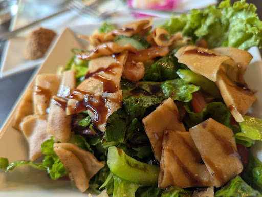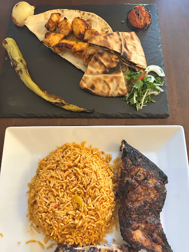 We ordered a 2-person plate with various items including babaganoush, a couple kinds of hummus, falafel, pita bread, pastries stuffed with cheese... Everything else on the plate was absolutely delicious and filling for 2 people. Before ordering we asked the waitress if it was all vegetarian and she said yes. Unfortunately we realised too late that her English was not the best and it also might have been her first day. There was a stuffed pastry of some sort which I realised was meat after I bit into it. While that item was not replaced for us, we did get an apology and free Arab coffees at the end. For those my age, I found the fact that the menu was only available via QR code very annoying and I could not make it work on my phone. A retro paper menu would have been very...