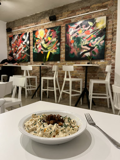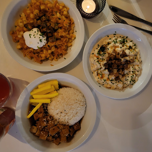 Read moreTotally recommend this place! I had vegan Halušky and it was so good. Kind staff also English speaking and English menu. Nice vibe in the place, kinda hip. Small vegan menu with both slovak and international dishes. Toilet and plug to charge phone. Didn't ask about wifi. Service only 4 stars because the restaurant arrangements with the vegan and non vegan part is confusing. There's no sign about the restaurant, so hard to find and when I found it the arrangement was still unclear and inconvenient and staff didn't explain very well. To find it you go to the restaurant cafe Possonium and order your vegan food in the basement and also pay there. But you can go up to the main restaurant ( which is not vegan) to...