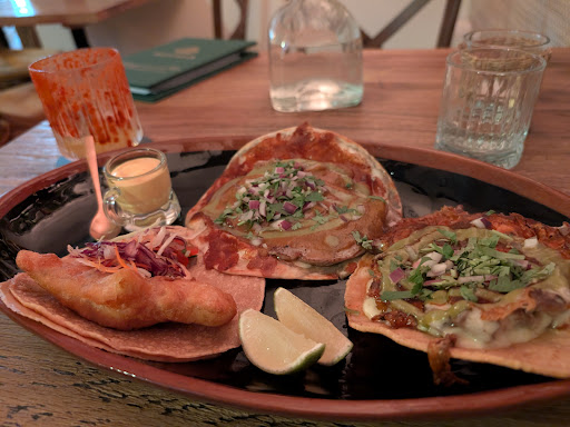 Was my first time visiting Mexican restaurant and it was unforgettable experience 😁. As soon as my dad and I entered the restaurant, we were given a table and the waitress asked us if it was our first time here. She explained some of the dishes, as well as suggested some of them to try. The whole dinner was around 100 euros, and if you consider how much of everything we got, it was super worth it. The first one was the guacamole which is served for two people. Usually, when I order myself guacamole most of them are tasteless, and you can barley taste the avocado. Here however, the guacamole was rich in flavour and it was so nice. Next we got ourselves variety of tacos and empanada de mariscos. Empanada de mariscos was my top dish from the lunch I had there. I do not know how to describe this masterpiece in words, you have to try it yourself, but It had seafood in it which came with two sauces (ketchup and salsa) and when I tried the empanada with the jalapeño ketchup, it tasted heavenly good that I felt like ordering a second portion of it. However we had 3 tacos in front of us so we had to try them as well. We got volcanes, nopales and mushroom, and alambre al carbon. They all were delicious and it is hard to describe them all in one word since their tastes are different and unique, but all I can say is that I never tried a better taco in my life before. Lastly , to complete our meal we got 2 quesadillas (which I forgot to take photos of) one with seafood and the other one with beef. The seafood one was super spicy for me however it was still good. And the beef one was my favourite one :) alongside with meals, we got drink which were margaritas and rice milk drink (which was delicious!) Overall I loved the food that was made, and the waiting time was not too long. I definitely recommend and I would be returning, in fact I already did and I will attach the photos of those dishes as well :) Thank you so much for such a great dinner experience at...
