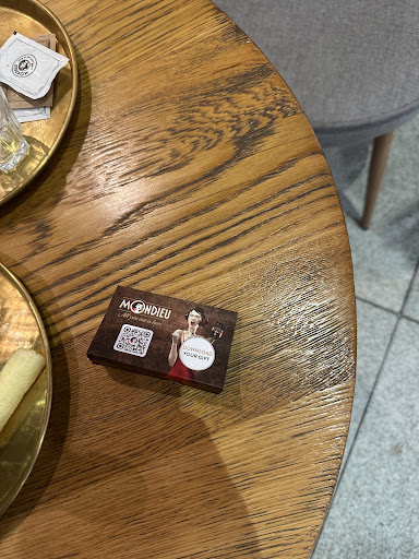 Chocolate was great, however they did not have any fruit apart fom banana. My glass of water was dirty and in my partner´s glass of water was some unidentified flowing piece. There was a limited cake choice. The place did not look clean. The cook or cleaner came out and when he dropped a small milk glass on the floor he just put it back among the clean ones as if nothing happened. In comparison to other Mondieu cafes in the Old Town, this is definitely the weakest one. We were very dissapointed since we love Mondieu and regularly visit Mondieu in the city centre. We will not come back to this one...