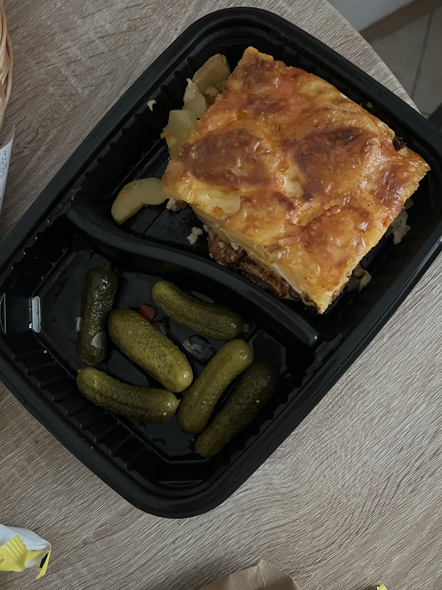 Za mňa zmiešané pocity. Kolísavá kvalita jedla, niekedy super, niekedy práve nie. Dnešný zeleninový boršč bol úplne nedochutený, nebyť v ňom kyslá kapusta, nemal by vôbec žiadnu chuť, ako zelenina uvarená vo vode. Vyprážané vykostené kuracie stehná OK, zemiačky trochu nedovarené. No, nie každý deň je sviatok. Strava je klasická, žiadne prekvapenia, až na minimum zeleniny alebo bezmäsitých jedál celkovo. Čo si nezaslúži pochvalu, je prostredie. Nad obslužným pultom sú veľké monitory - žiaľ vypnuté. Potom neviem, na čo tam vlastne sú. Menu ani inde, žiadna tabuľa, žiadna ponuka, nič. Malé lístky priamo pri jedlách v pulte, takže sa pred ním každý, kto si to nepozrel vopred na nete, tmolí a pozerá, čo vlastne majú. Občas nejaký lístok chýba, takže je to fakt dosť nešikovné. Miesta na sedenie je dosť, ale veľké sklené dvere púšťajú dovnútra veľa studeného vzduchu, ak sedíte blízko, nie je to nič príjemného. Zamrzia stoličky s kožienkou, ktorá je olúpaná ako keby mala 30 rokov (možno má)... Dorazil ma stolík pri okne, ktorý sa tak kýval, že som si musel presadnúť - nechýbalo veľa, aby tácka s celým obedom skončila na mojich kolenách. A ceny - v iných recenziách som čítal, že primerané. Pokiaľ by som mal len hlavné jedlo, OK. Ale šalát si treba prikúpiť, dokonca ani polievka nie je súčasťou menu. Kofola k tomu a platil som cez 10 €. Vzhľadom na prinajlepšom priemernú úroveň je to naozaj dosť. Odporučiť, neodporučiť? Asi treba skúsiť a urobiť si vlastný názor. Podľa mňa akceptovateľné, viac chváliť nie je čo. Doplnenie 20.12.2024: Posledný obed pred Vianocami a hlboké, hlboké sklamanie. V rade stálo asi 7 alebo 8 ľudí, a skoro som tam vystál dieru. Obsluhu tvorili tri dámy - jedna umývala riad, jedna vychystávala objednávky pre kuriérov, a tretia obsluhovala pri pulte a blokovala. No a to trvalo večnosť - šalát a kofola na druhom konci pultu, jedna omáčka za rohom, a ak sa zákazník nevedel hneď rozhodnúť, trvalo to ešte dlhšie. Pani pri pulte sa naviac veľmi nepretrhla, ležérne pohyby a čas diskutovať s kolegyňou o telefonických objednávkach dostatočne vykresľovali jej "záujem" o čakajúcich zákazníkov, prešľapujúcich z nohy na nohu. Niektoré tabuľky s názvami jedla tentoraz chýbali, o polievke sa dalo len tušiť... O jedenástej dopoludnia (!) už niektoré jedlá neboli, pár kúskov vyprážanej ryby dosypali tesne po mojom zaplatení. Tiež kolega za mnou už panenku v slaninke nedostal, lebo zvyšných asi 5 porcií promptne naložili do obalov pre kuriérov. Ale asi o veľa neprišiel, pretože panenka sa síce dala, ale omáčka bola spravená zo zapraženej múky a neskutočného množstva soli. Studená ryža len dokresľuje úroveň tohto zariadenia. A aby toho nebolo dosť, kofolu som dostal asi centimeter pod mieru. Spolu so šalátom, ktorý bol tvorený nejakou tou zeleninou a rukolou (úplne neochutený) to všetko stálo (tentoraz bez polievky) cez 9 €. Zostal som fakt zarazený. Prikladám fotky, môžete posúdiť sami. Samozrejme nepochválim, a po tejto skúsenosti ani nikomu neodporučím, pokiaľ sa niekto sám nechce na vlastnej koži presvedčiť. Rozhodne toto bola moja posledná návšteva, do takéhoto hampejzu, kde ide zrejme len o kšeft a počet predaných porcií, viac nevkročím. Hodnotenie 3 hviezdy si nezaslúžia, mením na jednu,...