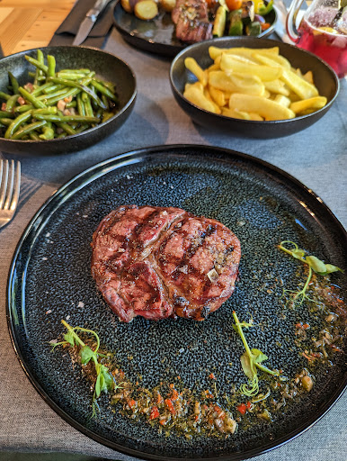 Read moreDobrý deň, boli sme sa u vás va večeri 18/9/24. Veľmi rád píšem pozitívne recenzie keď som spokojný ale bohužial sme odchádzali sklamaní. Atmosféra: velmi príjemna, pekná, útulna a čistá reštauracia. Jedlo: ako predjedlo sme mali hovädzi tatarak ten chutil vyborne.. Napoje boli v poriadku. Dalej sme si dali hovadzie steaky Tenderlion a T-bone chutovo perfektne vizualne tiež. Tendrelion bol objednaný medium a ten bol pripravený perfektne ale môt T-Bone som si vypýtal medium rare (nebolo mi povedané že steaky pripravujete iba na 3 spôsoby prepečenia RARE, MEDIUM, WELLDONE) a prišiel medium well až welldone. V slabších reštauraciach si objednávam radšej steaky rare lebo viem že ked to kuchári "prešvihnu" stale to bude super (medium rare alebo medium) ale kedže sme v steak house tak som si objednal presne ako mám rád (medium rare) ale tu sa to nepodarilo ako skúšal som ho rozkrájať ako sa dalo či aspon v strede alebo od kosti nebude aspoň medium ale fakt sa to blížilo už k welldone. Čo sa samozrejme môže stať aj veľmi šikovnému kuchárovy ktorý by ho mal skontrolovať pred vydaním casnikovi pre zakaznika či je taky aký si objednal a ak nie je tak ho nevydať. Ale ok stalo sa nič sa nedeje kedže my T-Bone vymenili preto som dal 5* na jedlo ale tu začína problem obsluhy: