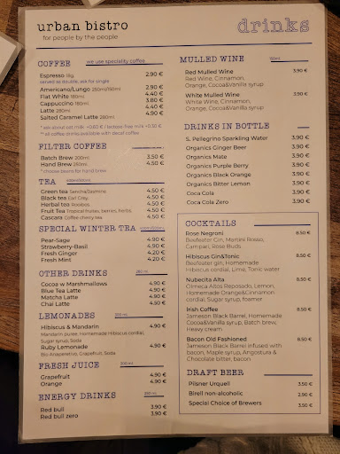 The space is nice, the staff was very welcoming HOWEVER and heres why theres however and only 2*: The name is "urban bistro" and the overall feeling, design and atmosphere doesn't match the business plan. We approached it thinking it would separate itself from the surrounding traditional cusine and caffeterias but were disappointed as the place cannot accomodate most of the food intolerances or allergies. We brought up this issue last year for an owner to reconsider but seemed we were ignored since we are "just" customers. Wouldnt recommend this place as it isnt anything special and you can get both better or same quality drinks and coffee and food literaly elsewhere and everywhere around for the same price. The staff was welcoming however it took more than 20 minutes to get our orders... People seated after us got theirs before we did? We felt as in todays world where people might have different dietary restrictions there would be more options for plant based milk that is also gluten free (oat milk which is the only plant based option they have - is often processed with wheat therefore it isnt gluten free unless it has the label...). Another * lost were due to not knowledgeble staff. Even if you ask the staff is not knowledgeble of the contents of foods and drinks and cannot advise in case you do have some allergies and you need to be sure. They wont even ask, just tell you "idk". And lastly, when everything spirals downward you cant go wrong with least coffee, right? Apparently you can..., this place proved us even coffee can be bad. The coffee is an "urban bistro roast" which was supposed to he fruity and acidic however it tasted as if youd squeezed lemon into it. Utterly disappointed.