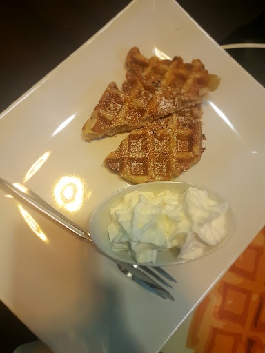 Rozhodli sme sa navštíviť Vašu prevádzku kde sme si dali waffle ktoré boli chuťovo veľmi dobré. Čo sa týka obsluhy, hneď arogantne na nás vybehla s arogantným podtónom že waffle nám už neurobí lebo je pol hodina pred záverečnou. Nakoniec nám waffle spravili na pokyn šéfa, waffle nám boli v ten deň prinesené na zle umytom tanieri. Dievčinu sme požiadali o výmenu nových tanierov a neriešili sme to ďalej. Na druhý deň sme na wafflu chceli zájsť znova kde sme si dali už veľmi veľký pozor na to že pol hodinu pred záverečnou už nerobia, takže sme prišli o pól siedmej 18:37, keď sme si otváraciu dobu pozreli na internete že zatvárajú o 20:00 (sobota) pracovníčka nám opäť arogantne odvrkla že wafflu nám nespraví, lebo ževraj oni zatvárajú za 20 minút a pritom na internete majú uvádzané že v sobotu majú otváracie hodiny do 20:00. Takže mi to nedalo napísať túto recenziu pretože majú na internete aj zle uvedený čas otváracích hodín a taktiež zle uvedené telefónne číslo, nedá sa...
