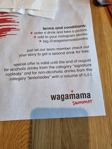 Considering the price with the quality of the food - dining here this week was very disappointing. I used to eat and order here in Wagamama Eurovea and it used to be ok. However, it seems like they increased the price while decreasing the quality of the food. We ordered donburi and Pad Thai. The donburi arrived very quickly. However, the food in general was almost cold. The meat should at least be freshly cooked with warm rice. It seems like they have this dish ready to cook already and probably in a warm tray - so no wonder the food arrived very quickly. Although in general, the donburi was ok- not great, not terrible. The Pad Thai on the other hand was a different case. I ordered this as I think you can never go wrong with this dish. However, this dish was basically a rice glass noodle, cooked in soy sauce with other ingredients. It totally did not taste like Pad Thai at all. I'm Asian and tried 'European' versions of these dishes (I know it tastes different if it's in Asia), but again, considering the price, I could have eaten in a different and cheaper Asian restaurant.