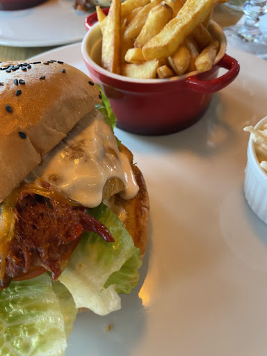 Read moreLoved this place, we went quite late and couldn't remember if there was a restaurant by the lake but despite thinking it was closed when we arrived, it was open, and actually buzzing! Don't be put off by the building works upstairs, downstairs is fabulous. We passed the small private "beach" and inside is like a tree house, all the tables and chairs/benches are unique as they are made from trees. The hospitality is great, the food is great and the drinks too. This is basicallyon a gravel pit, but they have turned it into a picturesque lake with homes and restautarants all around done a really nice job! To top it off we were sat next to a famous rapper (well the teenager was the only one who knew but it added interest)....