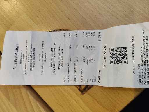 Keď burger konečne dorazil, opäť bez jediného slova navyše, cítil som frustráciu. Bol som hladný a celý zážitok z návštevy bol úplne pokazený. Z čašníka Kristiána som mal dojem povýšenosti, nulovej empatie a totálnej absencie zákazníckeho prístupu. Pri cenách, ktoré si Blue Bell účtuje, je takýto prístup neospravedlniteľný.