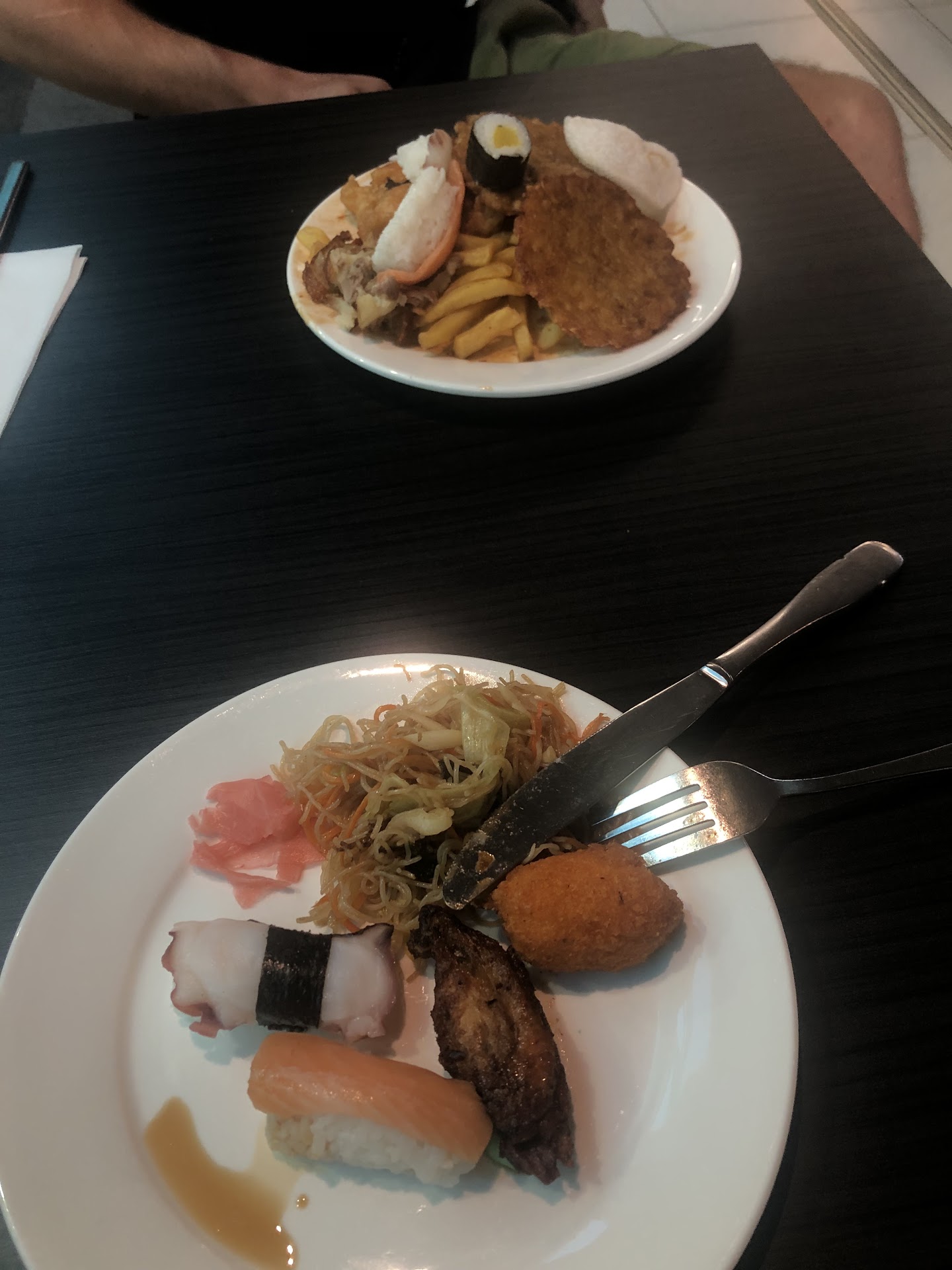 All you can eat where sushi is included in price. You can also pick some raw pieces and ask them to cook it on "plate". They also offers some menu items, but why would you order menu when you have all available with just little higher price. Taste is quite good but there are better tasting Asian restaurants in Košice. But I think it is worth to visit, especially if you are...