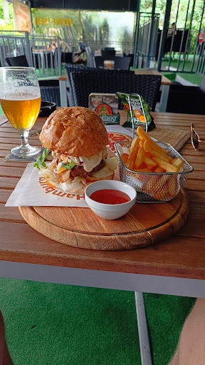 Pred nedávnom som navštívil daný podnik. Bolo to počas týždňa podvečer no v podniku bolo minimum ľudí , cca 3 stoly. Pracovala žiaľ len 1 slečna čo bolo vidieť aj na obsluhe ako aj že na stole bol stále plný popolník okej no. Po niekoľkých minútach konečne prišla o jednak som si pivko a burger ktorý je na fotke. Vyzeral top aj bol dobre ochutený no najväčšie sklamanie bola žemľa... Vyschnuta, ako keby si ráno kúpite čerstvé pečivo a necháte ho len tak stáť do večera... Škoda , lebo inak chuťovo bol dobrý.. no záver bol najlepší od kedy mi doniesla jedlo a pivko tak som ju už nevidel, 20 min po jedle som nakoniec šiel dnu že teda zaplatím tam. Čakal som tam slabších 5-10 min pri bare lebo nikto nikde. Aj mi ju bolo ľúto lebo zjavne vzadu vypomáhala ale toto je jednoznačne chýba ak nie majiteľa tak rozhodne prevádzkara, ak ho tam vôbec...