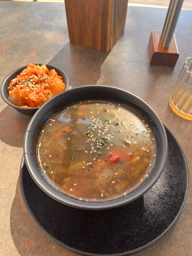 Hlavne jedlo: Nemozem určite posúdiť pretože mi priniesli kimchi maly šalát asi 20g možno viac Vznikol komunikačný šum no po veľmi rýchlo dojedenej polievke ktorej tanier som dala hneď nakraj ako znamenie si nikto nevšimol za 20 minút môjho čakania na hlavne jedno ktoré nikdy nebolo objednané- treba podoktnut že ozaj nebolo? Pretože keď som si to objednala tak asi 2 minuty nato vyšiel trocha spoza dverí pán (Adi kuchár) so červeným tričkom a mocným hlasom: “tak toto sa mi nechce robiť” poobzeral sa keď to hovoril a keď sa nám stretol očný kontakt tak zapliezol. Neviem či to bolo na mám no minimalne to vôbec nebolo vhodne. Keď po ty h 25 minútach už cca sa má prišli spýtať či si ešte niečo prosím tak som povedala že kedy vude to hlavne jedlo lebo už sa docela ponáhľam. A pani čašníčka ukazala na šalátik so slovami “toto je hlavne jedlo”. Samozrejme som sa opýtala naspäť, že ja som si objednala opekani ryžu s kimchi a ona hneď sa “zacudovala” a žiadne prepáčte Ano nič len bola ticho a ja že prosím zabaľte mi to a prosím si účet…. So všetkými týmito aspektom nemám záujem...